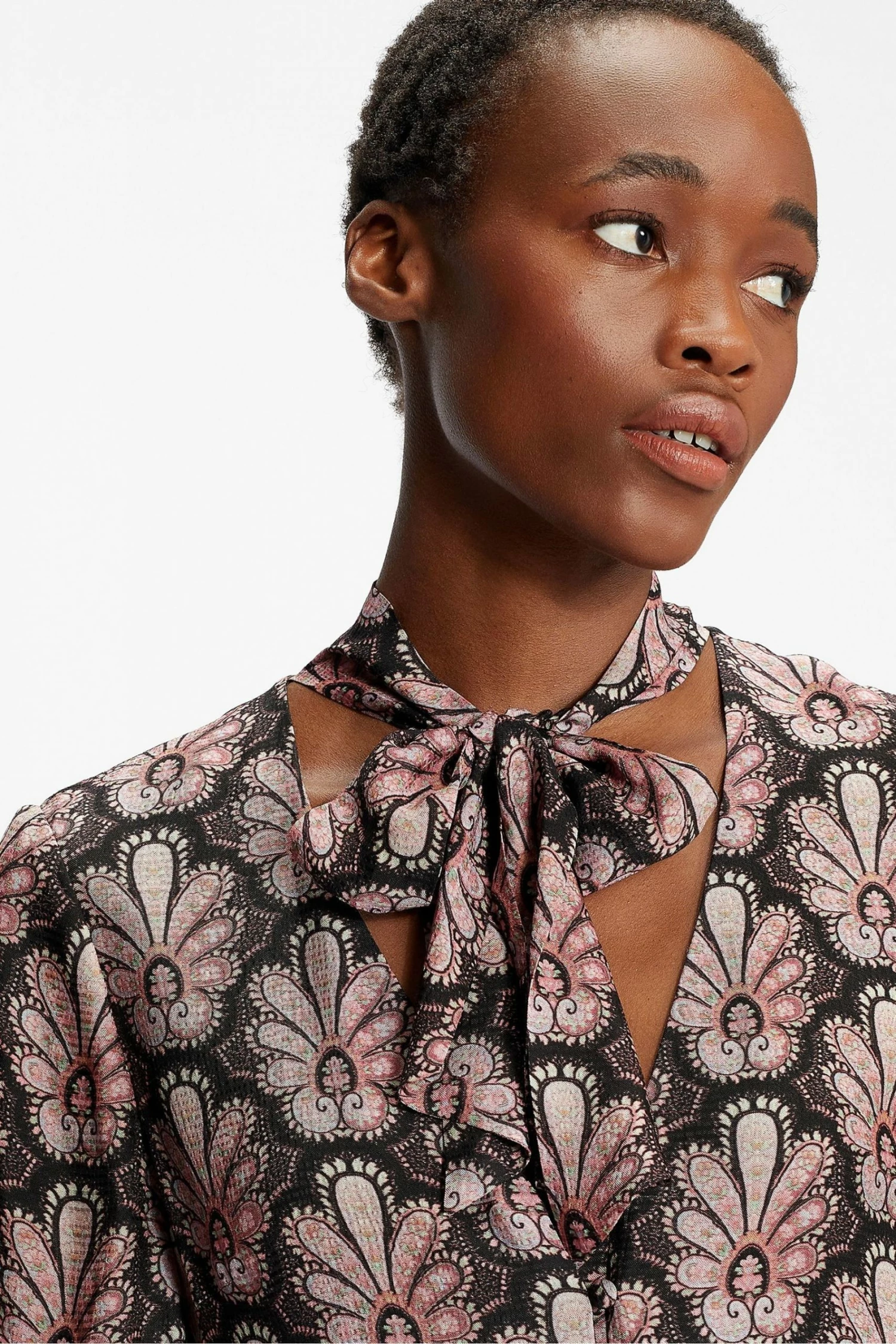 The dreamy DHANA dress is Autumnal elegance personified. Packed with vintage-inspired details: a pussy-bow neckline, balloon sleeves, and 70s-inspired paisley print. Team with statement earrings and touches of velvet to add a touch of romance to your look. Or add a tougher, modern edge with chunky boots and fluffy coat.