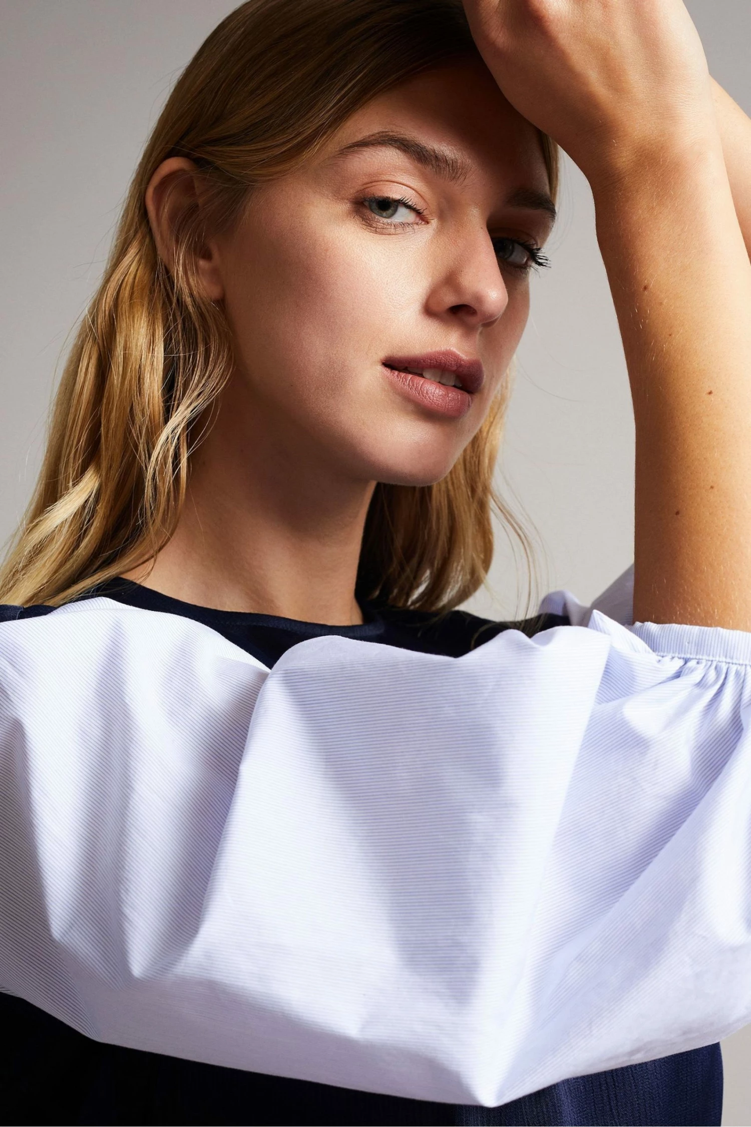 Ted Baker Kaytei Navy Blue Belted Midi Dress With Puff Sleeve