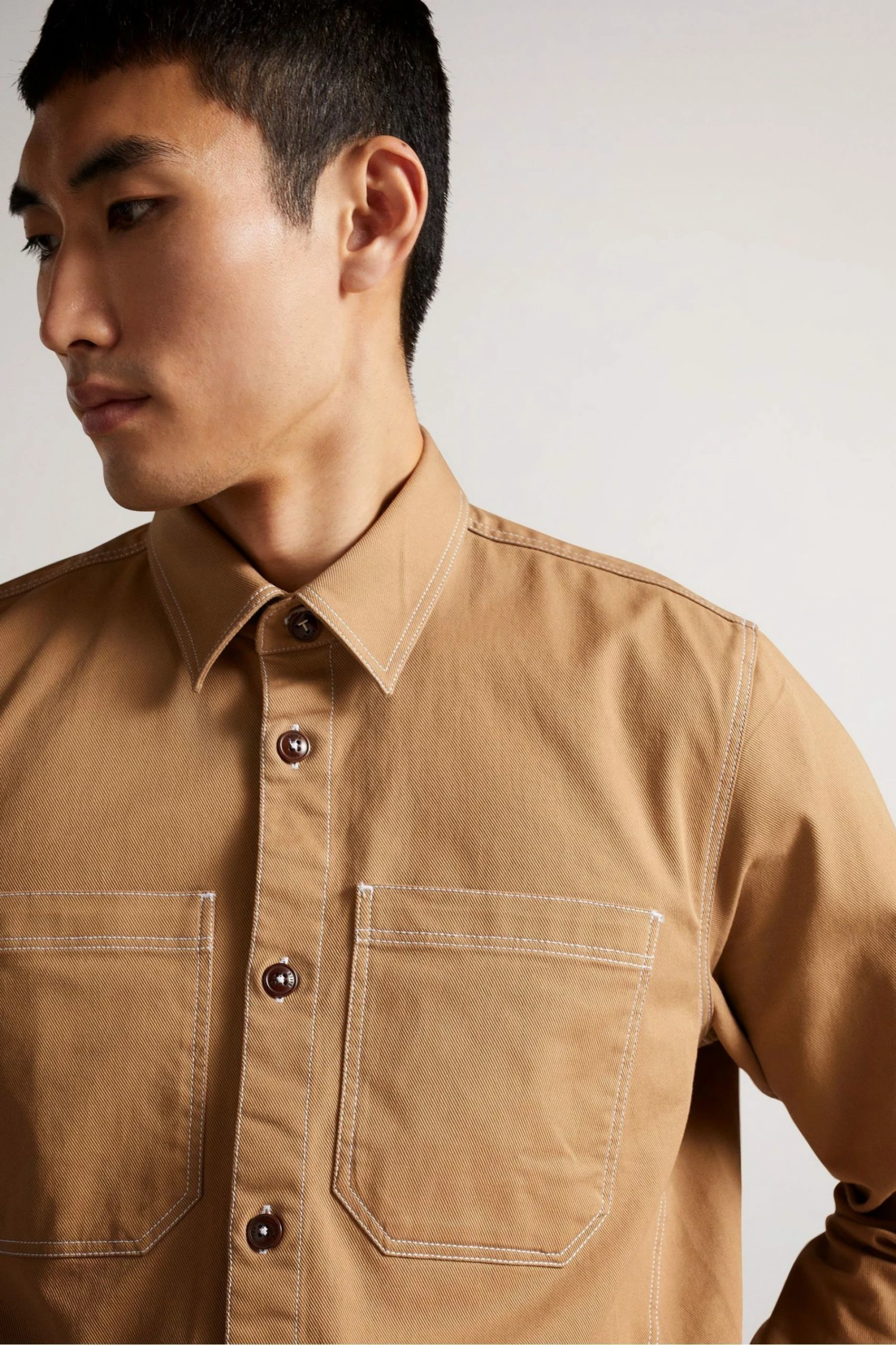 Perfect for the warmer weather where an extra layer is still required. This Ted Baker shacket features a button up fastening, collar, long sleeves and chest pockets in an all over slim fit wit stitching details. Perfect for pairing with some simple jeans and trainers to elevate your look.